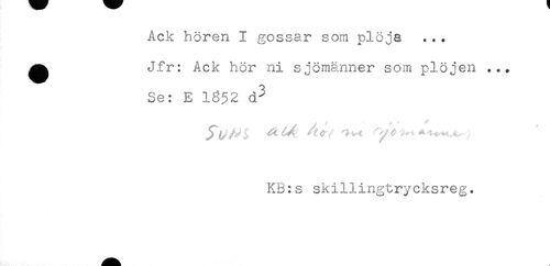 //// Ack hören I gossar som plöja //// ^ Jfr: Ack hör ni sjömänner som plöjen ... //// Se: E 1852 d^ //// KB:s skillingtrycksreg. ////