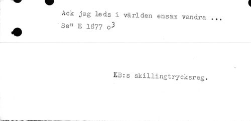 //// Ack jag leds i världen ensam vandra ... //// ^ Se" E 1377 o3 //// K3:s skillingtrycksreg. ////