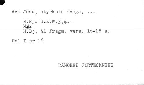 //// Ack Jesu, styrk de svaga, ... //// H.Bj. G.K.W.3,4.- //// Rgx _ ____ //// h.rj. fragm. vers. 16-1Ö s. //// Del I nr 16 //// RANCKEN FÖRTECKNING ////