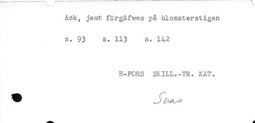 //// Ack, jemt förgäfwes på blomsterstigen //// s. 93 s. 113 s. 142 //// H-FORS SKILL.-TR. KAT. ////