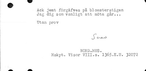 //// Ack jemt förgäfves på blomsterstigen //// Jag dig som vanligt att möta går... //// Utan prov //// NORD.MUS. //// Mskpt. Visor VIII.s. I365.E.U. 32072 ////