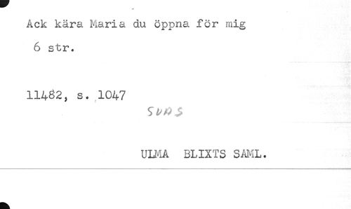 //// Ack kära Maria du öppna för mig //// 6 str. //// 11432, s. 1047 //// UUvIA BLIXTS SAML. ////
