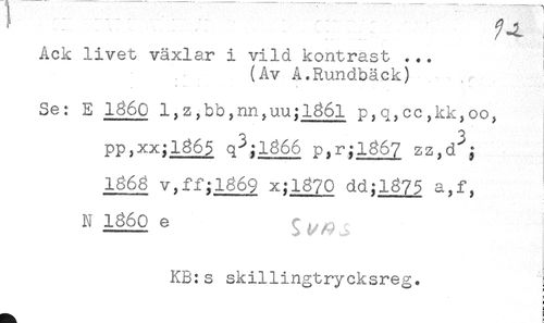 //// ' - - - - - / ^ //// Ack livet växlar i vild kontrast ... //// (Av A.Rundbäck) //// ' - - t ,. . //// Se: E 1860 l,z,bb,nn,uu;l86l p,q,cc,kk,oo, //// pp,xx;l365 q3;ig66 p,r;lg67 zz,d^; //// 1868 v,ff^669 x;l870 dd;1875 a,f, //// Nl860e ^^ //// KB:s s