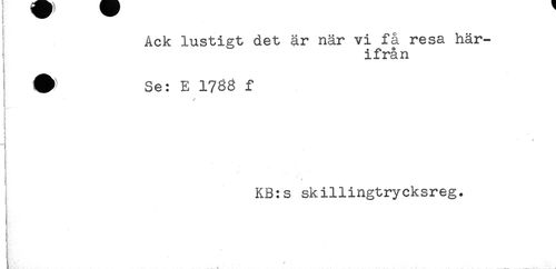 //// Ack lustigt det är när vi få resa här- //// ifrån //// # Se: E 1783 f //// a ; //// ! //// ,! ^ //// KB:s skillingtrycksreg. ////