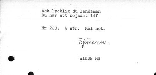 //// Ack lycklig du landtman //// Du har ett nöjsamt lif //// Nr 223. 4 istr. Mel not. //// } //// r , - //// t //// F //// ^ WIEDE ]yis //// < ////
