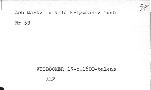 //// Åch Martz Tu alla Krigzmänsz Gudh //// Nr 53 //// < //// i //// < //// VISBÖCKER 15-o.l600-talens //// ÄLF : ////
