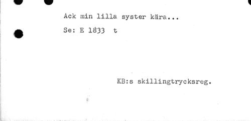 //// Ack min lilla syster kära... //// i //// ^ Se: E 1833 t //// ! //// i 4 //// KB:s skillingtrycksreg. //// -1 //// L.,' . ....... ' ////