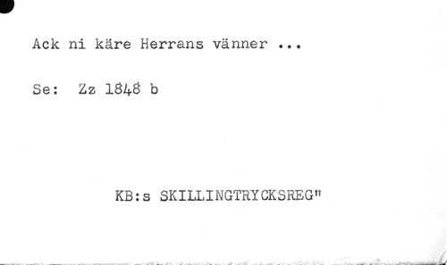 //// Ack ni käre Herrans vänner ... //// Se: Zz 1848 b //// KB:s SKILLINGTRYCKSREG" //// - ---__ .. < ... t*. - , .__ ////