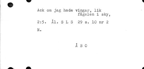 //// Ack om jag hade vingar, lik //// fågelen i sky, //// 2:5. Ål. S L S 29 s. 10 nr 2 //// N. //// ÅBO ////