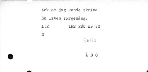 //// Ack om jag kunde skriva //// En liten sorgesång. //// 1:2 INE 28b nr 52 //// N ////