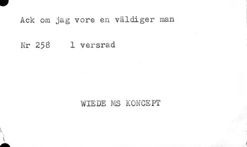 //// Ack om jag vore en väldiger man //// Nr 258 1 versrad //// WIEDE MS KONCEPT //// t, ////