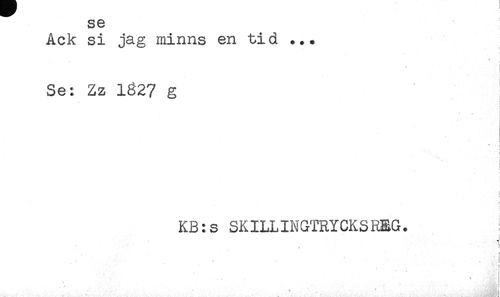 //// Ack si jag minns en tid ... //// ) //// Se: Zz 1S27 g //// ' ' i //// * - i //// < //// i //// ) //// } //// KB:s SKILLINGTRYCKSREG. : //// i //// * ! //// ' * ' ' * , //// ! //// . * ////
