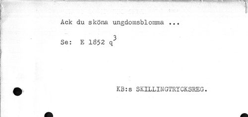 //// Ack du sköna ungdomsblomna ... //// Se: E 1852 q^ //// KB:s SKILLINGTRYCKSREG. ////