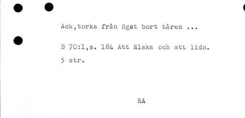 //// Ack,torka från ögat bort tåren ... //// ^ B 70:1,s. 1É4 Att älska och att lida. //// i //// i //// 5 str. //// i //// ! //// RÅ ////