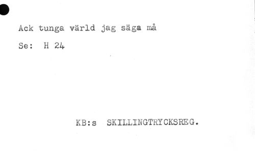 //// j //// ) //// Ack tunga värld jag säga må //// Se: H 24 //// KB:s SKILLINGTRYCKSREG. ////
