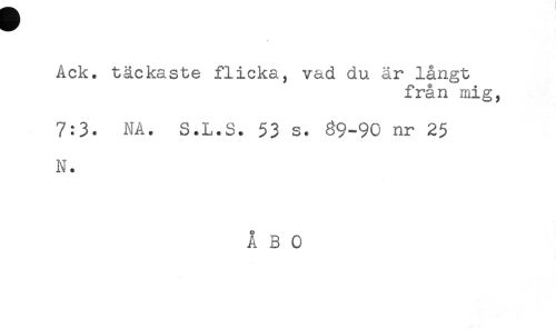//// Ack. täckaste flicka, vad du är långt //// från mig, //// 7:3. NA. S.L.S. 53 s. 89-90 nr 25 //// N. //// ÅBO ////