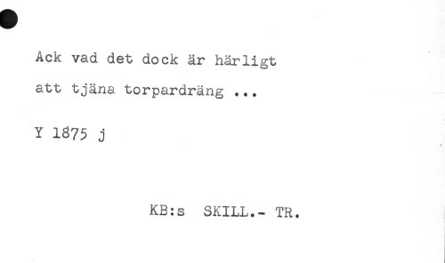 //// Ack vad det dock är härligt //// att tjäna torpardräng ... //// Y 1875 j //// KB:s SKILL.- TR. ////