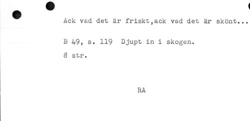 //// Ack vad det är friskt,ack vad det är skönt... //// B 49, s. 119 Djupt in i skogen. //// 8 str. //// RA ////