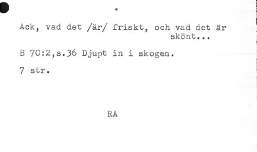 //// Ack, vad det /är/ friskt, och vad det är //// skönt... //// < //// ! //// B 70:2,s.36 Djupt in i skogen. //// 7 str. //// i //// < //// RA ////