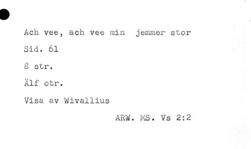 //// Ach vee, ach vee min jemmer stor //// Sid. 61 //// 3 str. //// Alf otr. //// Visa av Wivaliius //// ARW. MS. Vs 2:2 ////