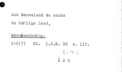 //// Ack Wärmeland du sköna } //// du härliga land, //// < //// i //// t //// WäriTi&andssån^. //// t //// f //// 2:6(7) HO. I.N.E. 98 s. 117. //// 3 ^ '3 ^ //// A B 0 ////