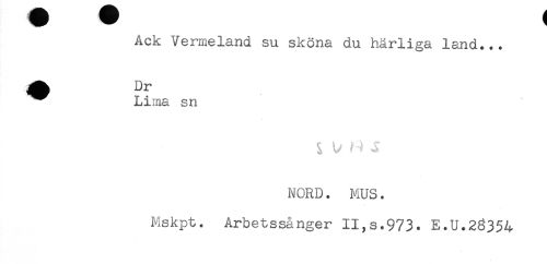 //// Ack Vermeland su sköna du härliga lend... //// ^^ Lima sn //// & b* J //// NORD. MUS. //// Mskpt. Arbetssånger II,s.973. E.U.2^354 ////