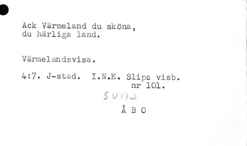 //// i //// i //// Ack Värmeland du sköna, //// du härliga land. //// Värmelan dsvisa. //// 4:7. J-stad. I.N.E. Slips visb. //// nr 101. //// ÅBO //// ) ////