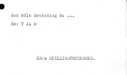 //// Ack ädla drottning du ... //// Se: T 14 b //// - //// KB:s SKILLINGTRYCKSREG. ////