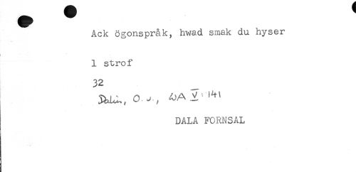 //// Ack ögonspråk, hwad smak du hyser //// 1 strof //// 32 //// o., , //// DALA FORNSAL ////