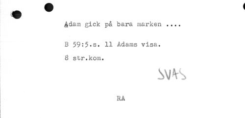 //// ^dam gick på bara marken .... //// B 59:5.s. 11 Adams visa. //// 8 str.kom. //// RA ////