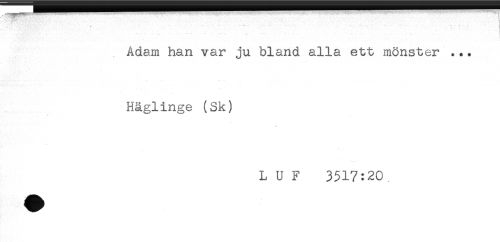 //// ' " : . ! //// Adam han var ju bland alla ett mönster ... //// Häglinge (Sk) //// L U F 3517:20. ////