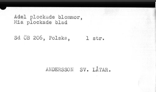 //// Adel plockade blommor, //// Mia plockade blad //// Sd ÖB 206, Polska, 1 str. //// ANDERSSON SV. LÅTAR. ////