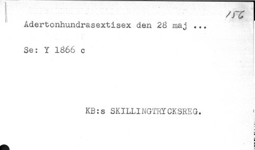 //// /J //// Adertonhundrasextisex den 26 maj ... //// Se: Y 1866 c //// . //// i* //// < //// KB:s SKILLINGTRYCKSREG. ^ //// : //// < //// g //// H //// B ////
