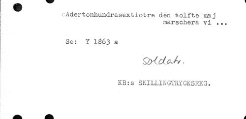 //// cådertonhundrasextiotre den tolfte maj //// marschera vi ... //// Se: Y 1663 a //// KB:s SKILLINGTRYCKSREG. ////
