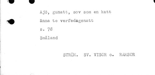 //// Ajo, gunatt, sov som en katt //// s //// änna te verfedagsnatt //// s. 78 //// Småland //// ! //// : //// STRÖM. SV. VISOR o. RAMSOR //// r ////