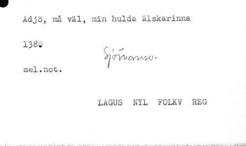 //// Adjö, må väl, min hulda älskarinna //// 136^ //// mel.not. ' //// LAGUS NYL FOLKV REG ////