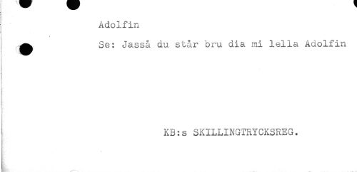 //// Adolfin //// ^ Se: Jassa du står bru dia mi lella Adolf in //// ! //// s //// KB:s SKILLINGTRYCKSREG. ////