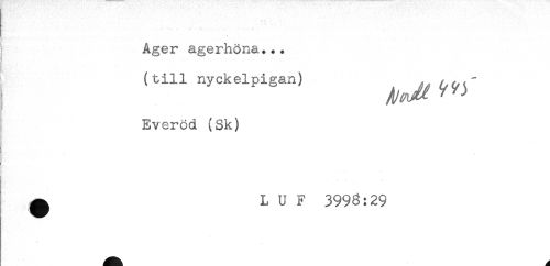 //// ) //// ! //// ; Ager agerhöna... //// I (till nyckelpigan) //// Everöd (Sk) //// t //// ^ L U F 3998:29 ////