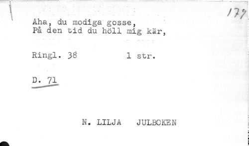 //// Aha, du modiga gosse, //// På den tid du höll mig kär, //// ! //// -..... .. t //// Ringl. 3g 1 str. [ //// N. LILJA JULBCKEN ////