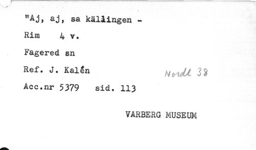 //// "Aj, aj, sa kälåingen - //// Rim 4 v. //// Fagered sn //// Ref. J. Kalgn //// Acc.nr 5379 sid. 113 //// VARBERG MUSEUM ////