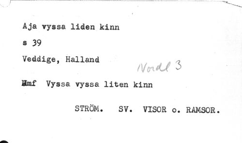 //// t //// Aja vyssa liden kinn //// s 39 //// Veddige, Halland ^ //// ämf Vyssa vyssa liten kinn //// STRÖM. SV. VISOR o. RAMSOR. ////