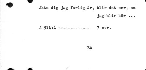 //// ^ Akte dig jag farlig ar, blir det mer, om //// jag blir kär ... //// A 514:4---- 7 str. //// RA ////