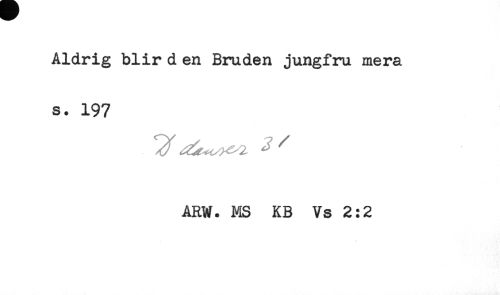 //// Aldrig blir d en Bruden jungfru mera //// s. 197 //// ' .^r, < - ^ ^ ^ //// ARW. MS KB Vs 2:2 ////
