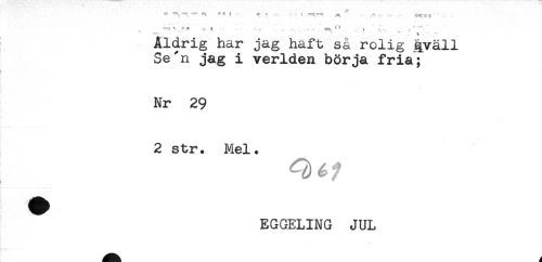 //// *-- ** «.< 3 <- - - - -K* . - <. ..<..? wa *'* . . * * J- ^ ^ //// Aldrig har jag haft så rolig ^väll //// Se'n jag i verlden börja fria; //// If: ' ' //// Nr 29 //// 2 str. Mel. //// EGGELINO JUL ////
