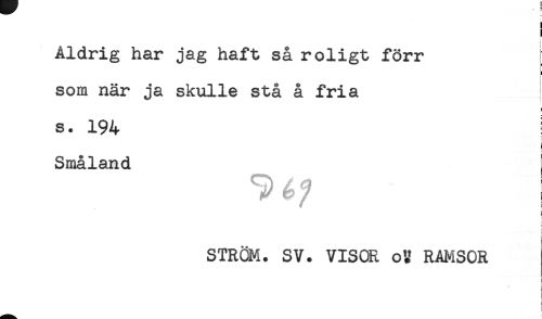 //// ! //// i //// Aldrig har jag haft så roligt förr //// som när ja skulle stå å fria //// s. 194 //// i //// ! //// t //// Småland { //// i //// i //// t //// } //// f //// i //// i //// STRÖM. SV. VISOR oK RAMSOR ////