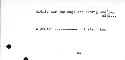 //// Aldrig har jag sagt och aldrig ska*jag //// säja... //// t //// i //// i //// i //// i //// * //// A 200:10 --- 1 str. kom. //// ! //// < //// RA ////