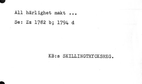 //// All häriighet makt ... //// Se: Zz 1762 b; 1794 d //// KB:s SKILLINGTRYCKSREG. //// < ////