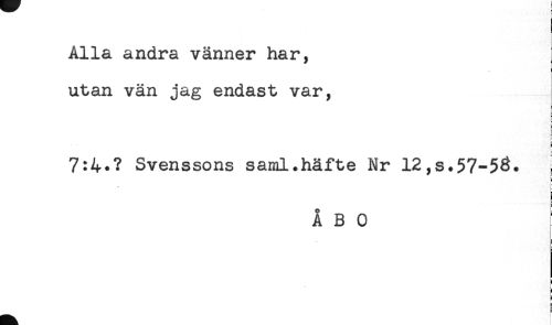 //// Alla andra vänner har, //// utan vän jag endast var, //// < //// t //// f //// < //// t. //// a //// 7:4.? Svenssons saml.häfte Nr 12,s.57-53. //// & //// t* //// ] //// ÅBO //// r //// L //// < //// B ////