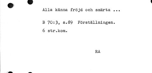 //// Alla känna fröjd och smärta ... //// B 70:3, s.39 Förställningen. //// s //// 6 str.kom. //// RA ////