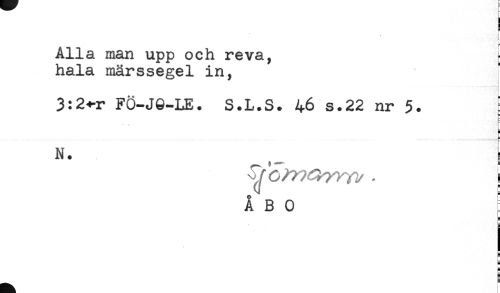 //// f //// i //// ! //// Alla man upp och reva, ^ //// hala märssegel in, //// 3:2<-r FÖ-J8-LE. S.L.S. 46 s.22 nr 5. //// N. ^ I //// ÅBO = //// 5 //// = ////